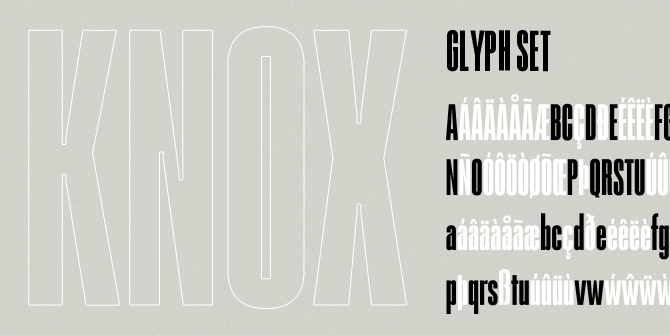 Knox started as a traditional condensed sans and grew into a unique editorial display typeface. The letterforms feature boxy counters and stylized matching ink-traps.